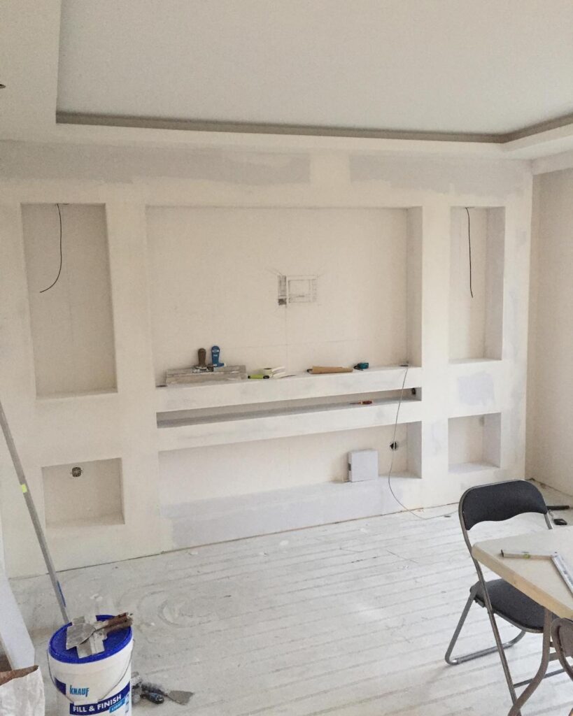 • ☑️ Strak gestuct, afgewerkt met verf, betonlook of decorpanelen