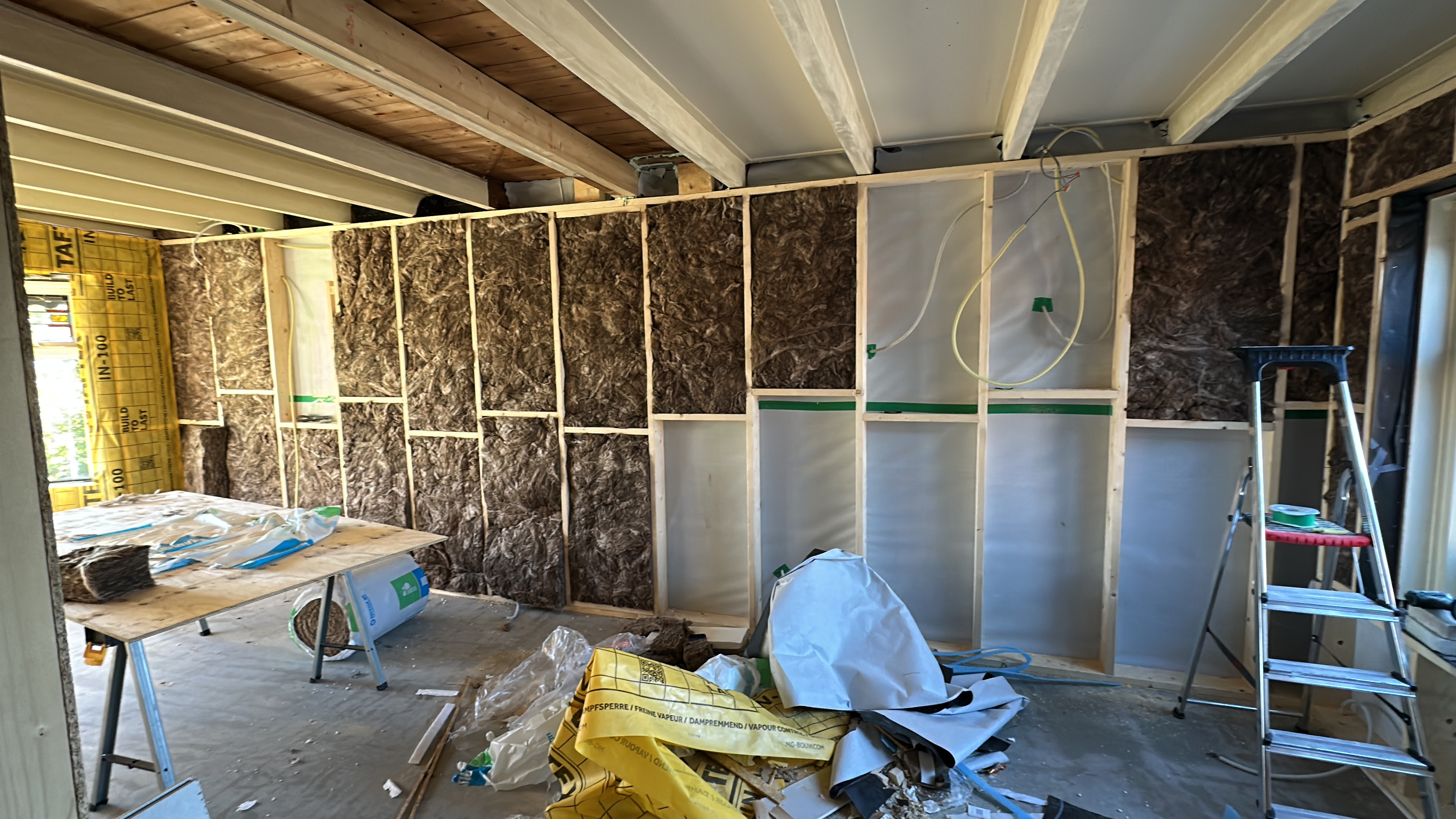 Wij verwijderen zorgvuldig oude voorzetwanden voor een betere isolatie.